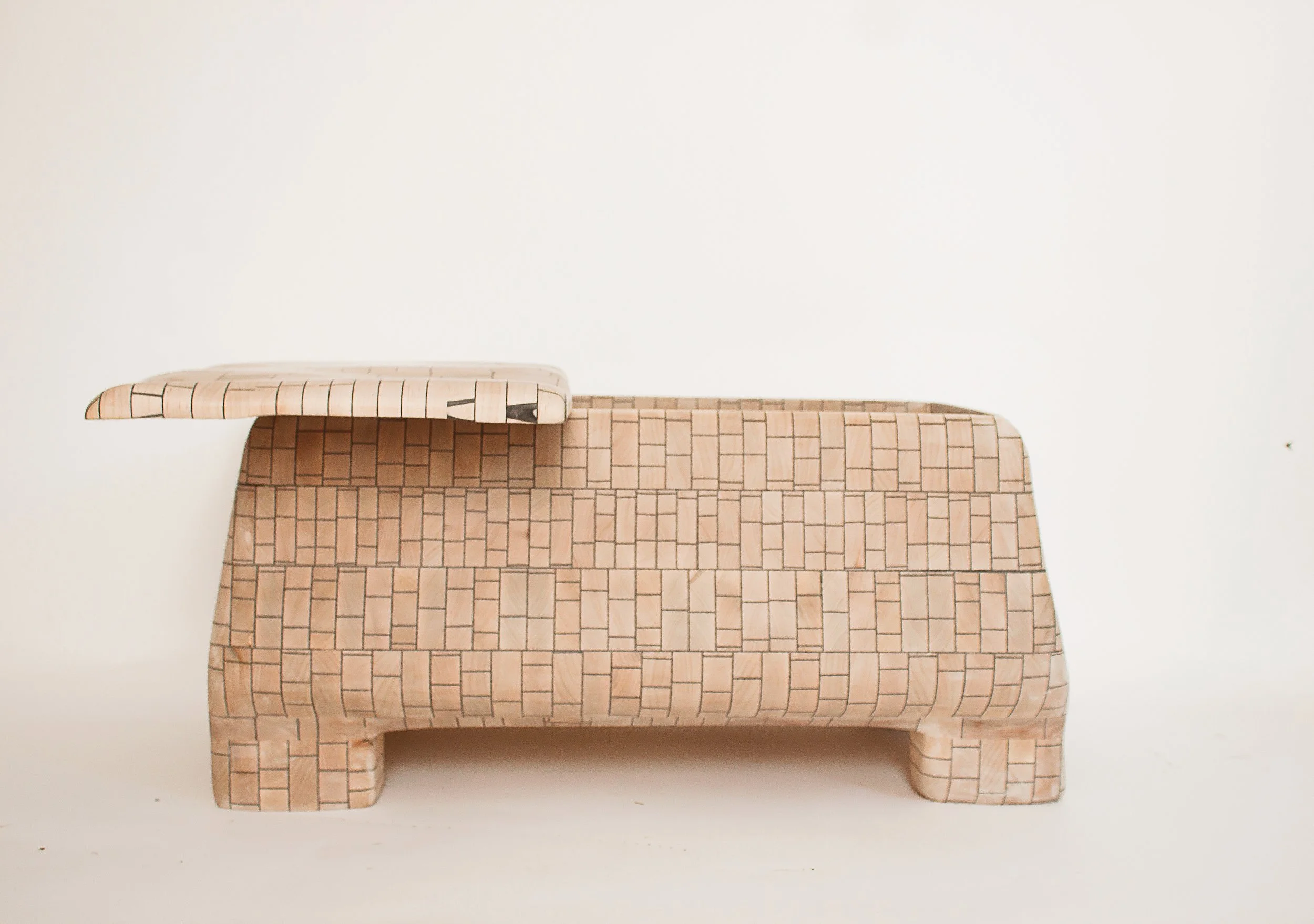 A container of pause and safe keeping, meant to hold memory, self and tradition. Created through layering natural maple and dyed veneer, hand carved with a wax finish.